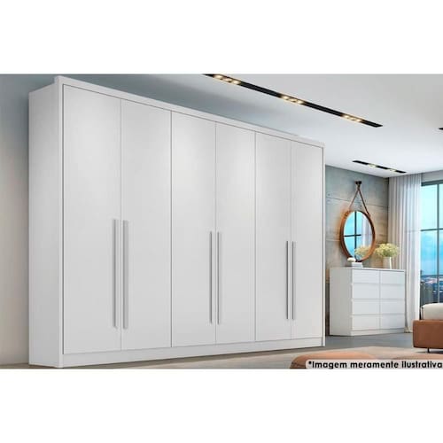 Material dos Cabideiros - Cabideira Metálico Tipo de Dobradiças - Dobradiça de Pressão Quantidade de Portas - 6 Portas de Abrir Tipo de Corrediça - c/ Corrediças Telescópicas Quantidade de Prateleiras - 6