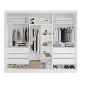 Características: Estrutura em 100 MDF Divisão no sistema ELE e ELA, 6 Gavetas internas Corrediças telescópicas Nicho organizador 3 prateleiras centrais bem distribuídas, Espaço para roupas longas Cabideiros em alumínio Puxadores em madeira envelopada.