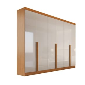 Guarda Roupa Casal 6 Portas em MDF Alvorada Bianchi O Guarda Roupa Alvorada seis portas é sinônimo de sofisticação e funcionalidade. Fabricado com matéria-prima de primeira qualidade em 100 MDF e estrutura reforçada, oferece durabilidade e resistência. Seu amplo espaço interno é dividido no sistema ELE e ELA, proporcionando praticidade na organização. Conta com seis gavetas internas com corrediças telescópicas que garantem deslizamento suave e duradouro, além de um nicho organizador com três prateleiras centrais ideais para acessórios e roupas dobradas. Possui ainda espaço dedicado para roupas longas, cabideiros em alumínio e puxadores em madeira envelopada, que agregam elegância ao design.