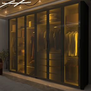 O Roupeiro Innova é um móvel moderno e elegante. Possui 06 portas em vidro Reflecta, cantos curvos e luz LED em cor quente que se destacam em seu visual e trazem um tom de aconchego a decoração. Seu interior pensado para facilitar a organização, possui gavetas espaçosas com corrediças telescópicas, ampla quantidade de prateleiras e tubos cabideiros. Este é o roupeiro perfeito para transformar seu quarto.