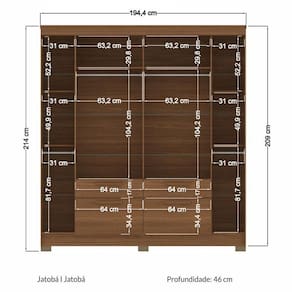 Guarda Roupa Casal 6 portas Guarapuava Jatobá - Santos Andirá