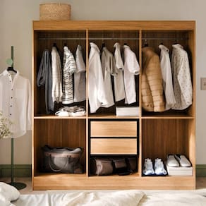 Cabideiros amplos que facilitam a organização de roupas longas e curtas