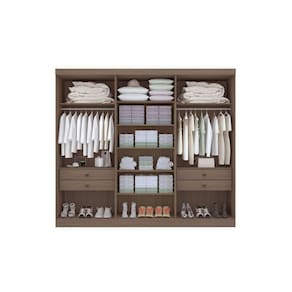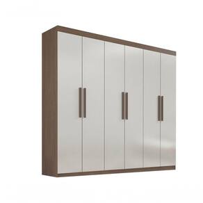 Guarda Roupa Casal 6 Portas Leblon Com Pés D' Doro Castanho/off White DESCRIÇÃO DO ROUPEIRO: ? 6 portas; ? MDF; ? Corrediça telescópica 40cm; ? Profundidade da gaveta 40cm; ? Abertura total da gaveta; ? Suporte cabide metálico; ? Cabideiro em alumínio; ? Puxadores de madeira; ? Gaveta com puxador; ? Produzido com chapa de 15mm; ? 02 opções de montagem; Acabamento acetinado INTERNO: ? 2 opções de montagem na parte interna