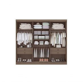 Guarda Roupa Casal 6 Portas Leblon Com Pés D' Doro Castanho DESCRIÇÃO DO ROUPEIRO: ? 6 portas; ? MDF; ? Corrediça telescópica 40cm; ? Profundidade da gaveta 40cm; ? Abertura total da gaveta; ? Suporte cabide metálico; ? Cabideiro em alumínio; ? Puxadores de madeira; ? Gaveta com puxador; ? Produzido com chapa de 15mm; ? 02 opções de montagem; Acabamento acetinado INTERNO: ? 2 opções de montagem na parte interna