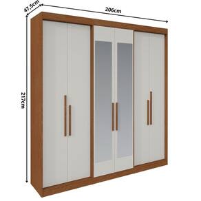 Acompanha espelho nas 2 portas centrais. Acabamento da Prateleira: Pintura UV Escala de Brilho da Prateleira: Semi-Brilho Possui Cabideiros: 02 Acabamento da Gaveta: Pintura UV Escala de Brilho da Gaveta: Semi-Brilho Possui Organizador de Gaveta: Não Acabamento da Porta: Pintura UV Escala de Brilho da Porta: Semi-Brilho Material do Puxador da Porta: MDP Altura do Espelho: 160 cm Ambiente Principal: Quarto codigo_ean: 7900288009135 Complexidade da Montagem: Alta: deve ser montado por um montador especializado Cor: Carvalho/Off White Cor da Porta: Branco Cor do Produto: Carvalho/Off White Cor do Puxador: Marrom Cor Interna: Linho Escala de Brilho: Semi-Brilho Espessura da Estrutura (mm): 12 mm Espessura das Portas (mm): 15 mm Espessura das Prateleiras (mm): 15 mm Espessura do Espelho: 3 mm Espessura do Fundo (mm): 12 mm Espessura do Fundo das Gavetas (mm): 12 mm Fita Integrada: Sim Formato do Espelho: Retangular Gaveta com Chave: Não Guarda-Roupa Suporta Até (kg): 70 kg Itens Inclusos: 1 Guarda Roupa e 1 Manual de Montagem Largura do Espelho: 26,5 cm Linha ou Coleção: Lugano Manual de Montagem e Instalação: https://product-hub-prd.madeiramadeira.com.br/968380/documents/ee8f60dc-828c-4393-87b6-5eb760a8bd052522661489017303066627635.pdf Marca: Edez Material da Gaveta: MDP Material da Porta: MDP Material da Prateleira: MDP Material Principal: MDP modular: Não Montagem Flex: Sim Necessita Montagem: Sim Nicho com Cabideiro: Sim Origem do Produto: Nacional Peso: 134,965 kg Peso Máximo por Gaveta: 5 kg Peso Máximo por Prateleira: 5 kg Porta Janelada: Não Possui Calceiros: Não Possui Capelinha: Não Possui Espaço para Vestidos Longos: Não Possui Espelho: Sim Possui Espelho Interno: Não Possui Ganchos: Não Possui iluminação: Não Possui Nichos: Não Possui Painel de TV: Não Possui Penteadeira: Não Possui Pés: Não Possui Portas: Sim Possui Prateleiras: Sim Possui Sapateira: Não Produto Montado: Sim Quantidade de Cabideiros: 02 Cabideiros Quantidade de Espelho: 02 Espelhos com Tamanhos Iguais Quantidade de Gavetas: 02 Gavetas Quantidade de Portas com Espelhos: 2 Portas com Espelho Quantidade de Prateleiras: 10 Prateleiras Recomendações de Uso, Manutenção e Limpeza: Recomenda-se a utilização de pano seco. Sistema de Montagem: Parafuso e Minifix Suporta Até (kg): 70 kg Tipo de Corrediça da Gaveta: Metálica Simples Tipo de Dobradiça/Corrediça da Porta: Metálica Tipo de Fixação do Espelho: Fita Dupla Face Tipo de Gaveta: Interna Tipo de Guarda-Roupa: Casal Tipo de Puxador da Gaveta: Não Possui Tipo de Puxador da Porta: Externo