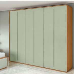 Guarda Roupa Casal 6 Portas MDF Loop Lopas. Este guarda-roupa oferece um design elegante e funcional, combinado com materiais de alta qualidade e características que garantem durabilidade no uso diário. Sua estrutura principal tem 15mm de espessura e suas laterais são feitas de material maciço com 18mm de espessura, proporcionando segurança e um acabamento suave possui cantos arredondados. Com puxadores possuindo design com cava, proporcionando um acabamento elegante em P.U. -Poliuretano-.