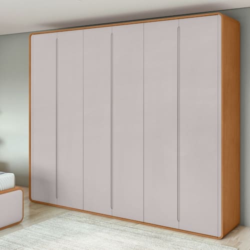 Guarda Roupa Casal 6 Portas MDF Loop Lopas. Este guarda-roupa oferece um design elegante e funcional, combinado com materiais de alta qualidade e características que garantem durabilidade no uso diário. Sua estrutura principal tem 15mm de espessura e suas laterais são feitas de material maciço com 18mm de espessura, proporcionando segurança e um acabamento suave possui cantos arredondados. Com puxadores possuindo design com cava, proporcionando um acabamento elegante em P.U. -Poliuretano-.
