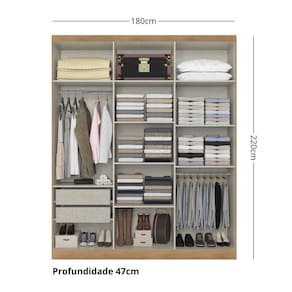 Dimensões: Altura: 220 cm Largura: 180 cm Profundidade: 47 cm Peso: 102,50 kg