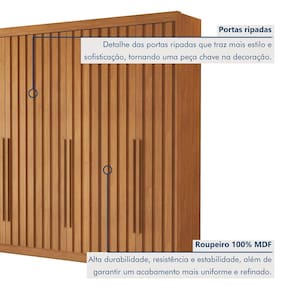 Está procurando um guarda roupa 100%MDF, espaçoso e que ainda levanta o nível da decoração do seu quarto? Então, nosso guarda roupa ripado é a sua escolha certa! Ele une resistência com acabamento top. Com 6 gavetas com corrediças telescópicas para você guardar tudo com praticidade, cabideiros em alumínio que aguentam o tranco, puxadores em madeira que dão aquele charme natural e fundo inteiriço que deixa tudo mais firme. Ah, e as dobradiças Slow Motion não deixam nenhuma porta bater, é conforto até na hora de fechar!