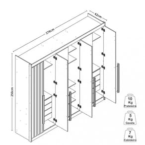 Cada prateleira suporta 10Kg