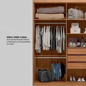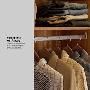Máxima capacidade de armazenamento tem nome, Guarda-Roupa Sumatra. Os compartimentos internos atendem tranquilamente as necessidade de um casal. Os espaços destinados aos cabideiros são amplos e acomodam camisas, calças, vestidos de médio comnto e até mesmo casacos de inverno. Para peças que podem ficar dobradas ou produtos de beleza, o Guarda Roupa Sumatra tem amplas prateleiras. E tem mais! Gavetas internas para as roupas íntimas ou o que você desejar manter armazenado com mais discrição. Muito bom, não é mesmo? E para os pares de sapatos mais s no dia a dia, o Guarda-Roupa Sumatra ainda conta com um espaço especialmente para eles. O grande diferencial do Guarda-Roupa Sumatra é o incrível maleiro para acomodar travesseiros, cobertores, lençóis e fronhas. Para um experiência completa, o Guarda-Roupa Sumatra tem design com portas inteiriças proporciona a sensação de pé-direito mais alto e um ambiente sofisticado. Com o Guarda-Roupa Sumatra, quarto mais bonito e um nível de organização e praticidade no seu dia a dia.