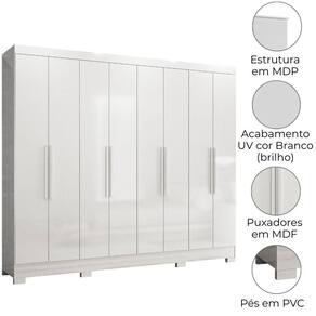 Com design funcional e excelente aproveitamento interno, o Guarda-Roupa Casal Diplomata é a escolha ideal para quem busca organização e estilo. Estrutura em MDP (15/ 12 mm) e acabamento em pintura UV. Composto por portas com dobradiças metálicas, cabideiro interno (alumínio), gavetas com corrediças metálicas e prateleiras. Produto com dupla opção de montagem: pés em PVC ou sapatas plásticas (2 mm) conforme preferência do cliente. Este produto será entregue em 03 volumes.