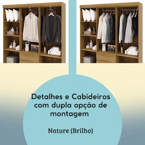 Guarda Roupa Casal 6P 2G Espelho 153 cm Nature VLR