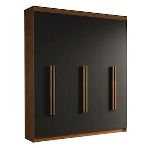 Possui uma pintura de alta resistência, que garante durabilidade e um acabamento impecável por muito mais tempo. A estrutura e os puxadores são em tom amadeirado Rustic e as portas na cor preta, criando um visual sofisticado que se adapta a qualquer estilo de decoração. Os puxadores de 80 cm, fabricados em MDF, são um dos grandes diferenciais, trazendo um design alongado e moderno.
