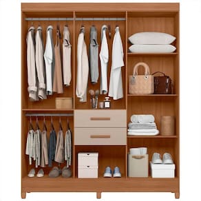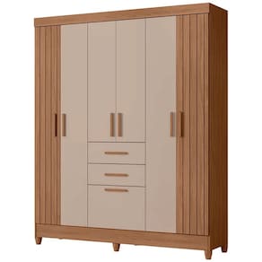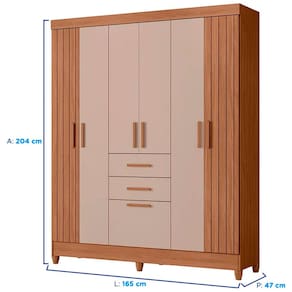 Espaço e qualidade O Roupeiro Moval é sinônimo de qualidade e espaço. Possui 7 portas e 2 gavetas, oferecendo mais praticidade para guardar suas roupas. Fabricado em MDP de alta qualidade, seu puxador é em MDF, proporcionando um acabamento elegante. As gavetas possuem corrediças metálicas, garantindo maior segurança e durabilidade. Suas portas contam com detalhes frisados, seus pés em PVC facilitam a limpeza, e ele ainda possui 3 cabideiros feitos em alumínio. O Guarda-Roupa Moval foi feito para você!