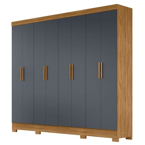 Robusto e imponente, o Guarda Roupa Casal 8 Portas 4 Gavetas 236cm Ágata M07 Freijó/Cinza, da Mpozenato, é a opção perfeita para você que busca um guarda roupa grande e, ao mesmo tempo, com design moderno.