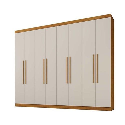 Altura 218 cm Largura 245 cm Profundidade 47 cm Matéria Prima MDP 15 mm Espaço para Sapatos Sim Tipo de Pintura UV Prazo de Garantia 3 meses contra defeitos de fabricação Quantidade de Gavetas 4 Gavetas Tipo de Corrediças Telescópicas Quantidade de Cabideiros 3 Material dos Cabideiros Alumínio Quantidade de Portas 8 Forma de Abertura Abrir Portas Dupla Face Não Portas com Espelhos Não Material do Puxador Madeirado Quantidade de Prateleiras 8 Necessita de Montagem Sim Dica de Montagem Recomendamos que a montagem seja feita por profissional de sua confiança Recomendações de Limpeza Utilizar pano macio seco ou ligeiramente umedecido com água Informações Os objetos que ambientam as fotos não acompanham o produto