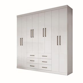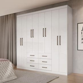 O Guarda Roupa Liverpool da Santos Andirá é um móvel prático e funcional, e se encaixa em qualquer ambiente do quarto de casal ou solteiro. Com 8 portas e 6 gavetas, esse roupeiro garante muito espaço para guardar todas as roupas. Puxadores em ABS garantem um design moderno. Internamente, possui amplas prateleiras para guardar todas as roupas de forma organizada, assim como edredons, cobertores, caixas, travesseiros, decoração, etc. Possui 3 cabideiros em alumínio para pendurar todas as roupas (casacos, vestidos, camisas, blusas) com muita organização e segurança. O acabamento na cor branca é com verniz brilho, tudo dentro dos padrões de preservação do meio ambiente. Um guarda roupa de casal completo e muito prático para o seu quarto! Acabamento da Prateleira: Pintura Escala de Brilho da Prateleira: Semi-Brilho Possui Cabideiros: 02 Acabamento da Gaveta: Pintura Escala de Brilho da Gaveta: Semi-Brilho Material do Puxador da Gaveta: ABS Possui Organizador de Gaveta: Não Acabamento da Porta: Pintura Escala de Brilho da Porta: Semi-Brilho Material do Puxador da Porta: ABS Ambiente Principal: Quarto Complexidade da Montagem: Alta: deve ser montado por um montador especializado Cor: Branco Cor do Produto: Branco Cor Flex: não Cor Interna: Branco Escala de Brilho: Semi-Brilho Gaveta com Chave: Não Itens Inclusos: 1 Guarda Roupas, Kit Ferragens e Manual de Montagem Linha ou Coleção: 2021 Manual de Montagem e Instalação: https://cdn2.madeiramadeira.com.br/atributo/santos-andira/893499-949234-04-g-r-liverpool-8-6.pdf Material da Gaveta: MDP Material da Porta: MDP Material da Prateleira: MDP Material Principal: MDP Montagem Flex: não Necessita Montagem: Sim Origem do Produto: Nacional Peso: 130 kg Peso Máximo por Gaveta: 3 kg Peso Máximo por Prateleira: 3 kg Possui Calceiros: 01 Possui Espaço para Vestidos Longos: Sim Possui Espelho: Não Possui Espelho Interno: Não Possui Ganchos: Não Possui iluminação: Não Possui Painel de TV: Não Possui Pés: Não Possui Portas: 08 Possui Prateleiras: 09 Possui Sapateira: Não Recomendações de Uso, Manutenção e Limpeza: Pano levemente úmido Sistema de Montagem: Parafusos Tamanho: Tipo de Corrediça da Gaveta: Metálica Simples Tipo de Dobradiça/Corrediça da Porta: Metálica Tipo de Gaveta: Externa Tipo de Guarda-Roupa: Casal Tipo de Puxador da Gaveta: Externo Tipo de Puxador da Porta: Externo