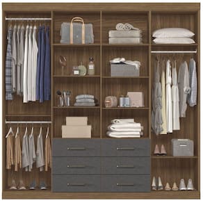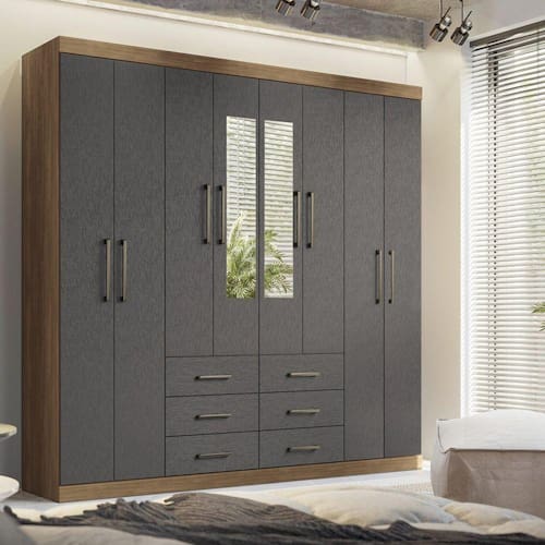 Possui 3 cabideiros em alumínio para pendurar todas as roupas (casacos, vestidos, camisas, blusas) com muita organização e segurança. O acabamento na cor branca é com verniz brilho, tudo dentro dos padrões de preservação do meio ambiente. Um guarda roupa de casal completo e muito prático para o seu quarto! Acabamento da Prateleira: Pintura Escala de Brilho da Prateleira: Semi-Fosco Possui Cabideiros: Sim Acabamento da Gaveta: Pintura Escala de Brilho da Gaveta: Semi-Fosco Material do Puxador da Gaveta: ABS Possui Organizador de Gaveta: Não Acabamento da Porta: Pintura Escala de Brilho da Porta: Semi-Fosco Material do Puxador da Porta: ABS Altura do Espelho: 75 cm Ambiente Principal: Quarto codigo_ean: 7909903490587 Complexidade da Montagem: Média: pode ser montado por mais de uma pessoa e/ou necessite de maior conhecimento para montagem Cor: Jatobá/Grafite Cor do Produto: Jatobá/Grafite Cor Flex: Não Cor Interna: Jatobá Escala de Brilho: Semi-Fosco Espessura do Espelho: 2,5 mm Fita Integrada: Sim Formato do Espelho: Retangular Gaveta com Chave: Não Informações Complementares: Possui 02 espelhos Itens Inclusos: 1 Guarda Roupa, Kit Ferragens e Manual de Montagem Largura do Espelho: 20 cm Linha ou Coleção: Liverpool Manual de Especificação Técnica: https://product-hub-prd.madeiramadeira.com.br/879844/documents/5c7f2adb-fa4a-415c-b0a3-0bb8f49534341664226150248e.pdf Manual de Montagem e Instalação: https://product-hub-prd.madeiramadeira.com.br/879844/documents/752a1ead-716e-42d0-97fa-e30d32d6fc386416494923406grliverpool86.pdf Material da Gaveta: MDP Material da Porta: MDP Material da Prateleira: MDP Material Principal: MDP modular: Não Montagem Flex: Não Necessita Montagem: Sim Origem do Produto: Nacional Peso: 132,2 kg Peso Máximo por Gaveta: 3 kg Peso Máximo por Prateleira: 3 kg Possui Calceiros: 01 Possui Espaço para Vestidos Longos: Sim Possui Espelho: Sim Possui Espelho Interno: Não Possui Ganchos: Não Possui iluminação: Não Possui Nichos: Não Possui Painel de TV: Não Possui Pés: Não Possui Portas: Sim Possui Prateleiras: Sim Possui Sapateira: Não Produto Montado: Sim Quantidade de Espelho: 02 Espelhos com Tamanhos Iguais Quantidade de Gavetas: 06 Gavetas Quantidade de Prateleiras: 11 Prateleiras Recomendações de Uso, Manutenção e Limpeza: Pano levemente úmido Sistema de Montagem: Parafusos Tipo de Corrediça da Gaveta: Metálica Telescópica Tipo de Dobradiça/Corrediça da Porta: Metálica Tipo de Fixação do Espelho: Fita Dupla Face Tipo de Gaveta: Externa Tipo de Guarda-Roupa: Casal Tipo de Puxador da Gaveta: Externo Tipo de Puxador da Porta: Externo Ean: 7909903490587