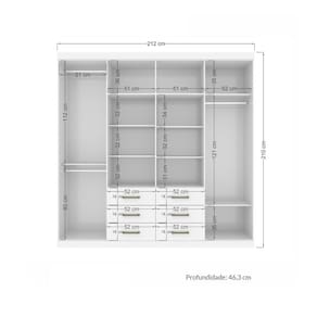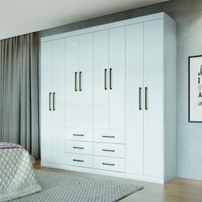 Características: Estrutura em MDP 8 Portas Dobradiças metálicas 6 Gavetas Corrediças metálicas Prateleiras Cabideiros de alumínio Puxadores em ABS