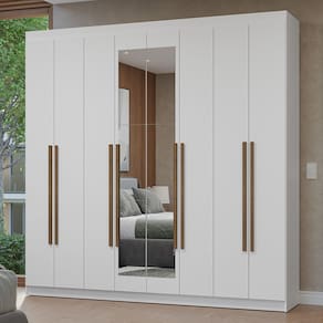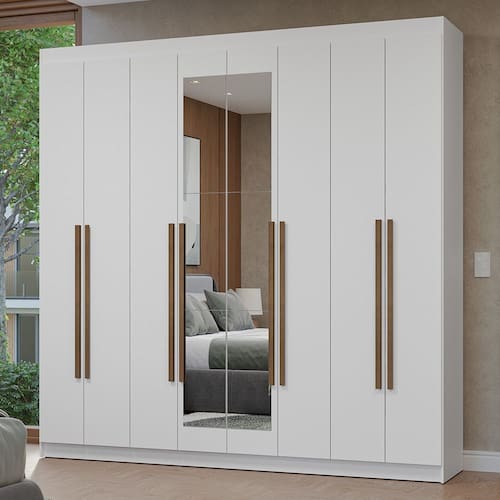 - Um (1) Guarda-Roupa com oito (8) portas batentes, sendo seis (6) de madeira e duas (2) com espelho