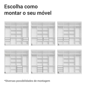 O Guarda-Roupa Venus oferece versatilidade para organizar seu espaço da melhor forma. Com dobradiças com amortecimento, as portas fecham suavemente. As gavetas com corrediças telescópicas permitem abertura total, enquanto o amplo maleiro é perfeito para itens maiores. Além disso, você pode ajustar as gavetas e prateleiras para personalizar o interior conforme suas necessidades. As portas do meio possuem espelho, agregando ainda mais funcionalidade e sofisticação ao móvel.
