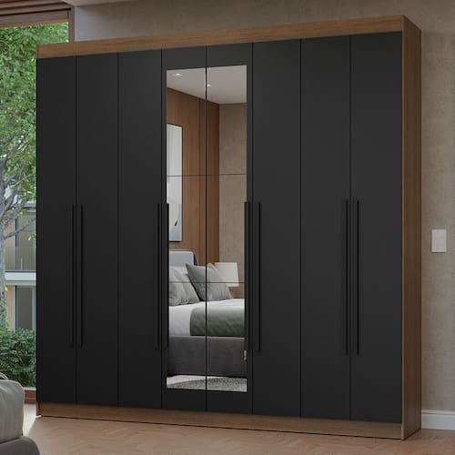 - Um (1) Guarda-Roupa com oito (8) portas batentes, sendo seis (6) de madeira e duas (2) com espelho