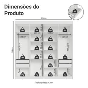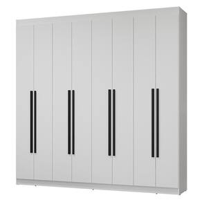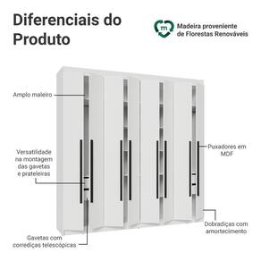 Possui uma pintura de alta resistência, que garante durabilidade e um acabamento impecável por muito mais tempo. A estrutura e as portas são na cor Branca e os puxadores em Preto, criando um visual sofisticado que se adapta a qualquer estilo de decoração. Os puxadores de 80 cm, fabricados em MDF, são um dos grandes diferenciais, trazendo um design alongado e moderno.