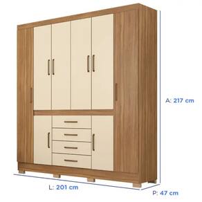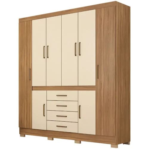 Com 08 portas, 04 gavetas e 04 cabideiros, o modelo oferece uma excelente capacidade de armazenamento, permitindo organizar roupas, calçados e acessórios de forma eficiente. As portas proporcionam acesso fácil e amplo aos compartimentos, ideais para pendurar peças de roupa, como casacos, vestidos e camisas, enquanto as gavetas, equipadas com corrediças metálicas, oferecem praticidade para itens menores, como roupas íntimas, acessórios, lençóis e toalhas.