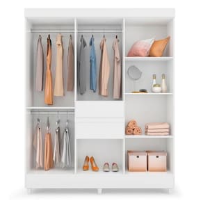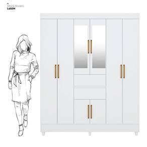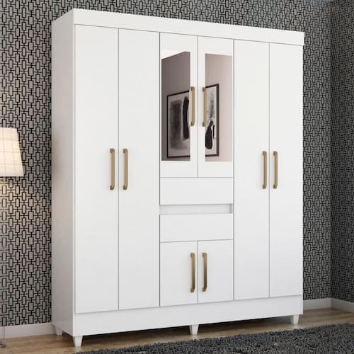Com oito portas e duas gavetas espaçosas, oferece amplo armazenamento para roupas, acessórios e objetos pessoais.