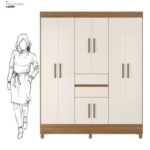 Com oito portas e duas gavetas espaçosas, oferece amplo armazenamento para roupas, acessórios e objetos pessoais.
