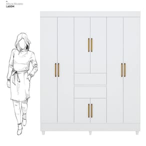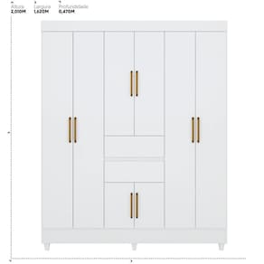 Com oito portas e duas gavetas espaçosas, oferece amplo armazenamento para roupas, acessórios e objetos pessoais.
