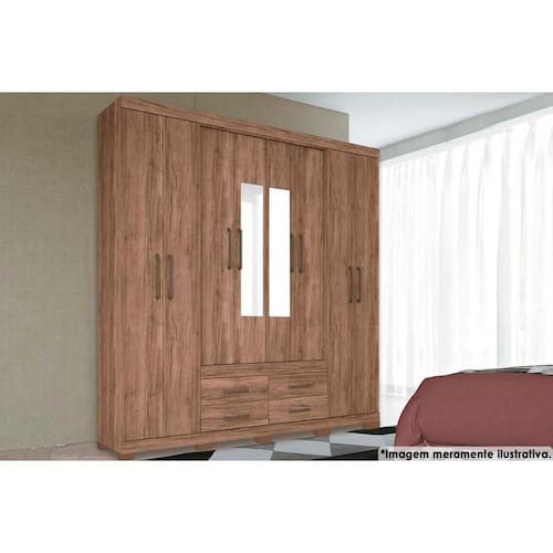 Guarda Roupa Casal 8 Portas e 4 Gavetas c/ Espelho e Pés Nápoles Atacama - Santos Andirá