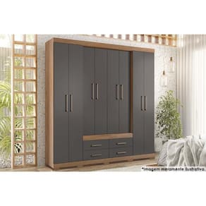 Guarda Roupa Casal 8 Portas e 4 Gavetas c/ Pés Nápoles Jatoba/Grafitte - Santos Andirá
