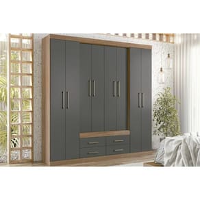 Material do Calceiro - Calceiro Metálico Tipo de Cabideiro - Aéreo Material dos Cabideiros - Cabideira Metálico Tipo de Porta do Guarda-Roupa - Portas de Bater Material das Portas - Portas em MDP Tipo de Dobradiças - Dobradiças Metálicas Quantidade de Portas - 4 Portas de Abrir Material das Gavetas - Gavetas em MDP Tipo de Corrediça - c/ Corrediças Telescópicas Quantidade de Gavetas - 4 Gavetas Material de Estrutura Fundo Gaveta - Em HDF Material das Prateleiras - Prateleiras em MDP Quantidade de Prateleiras - 8 Quantidade de Nichos - 10 Nichos