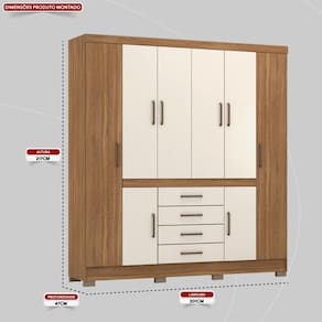 Material: MDP | Cor: Branco | Guarda Roupa Altura x Largura x Profundidade: 2,17 x 2,01 x 0,47 | Material do Guarda Roupa: MDP | Quantidade de Portas Guarda Roupa: 8 | Quantidade de Gavetas Guarda Roupa: 4 | Cômodo Indicado: Quarto | Possui Prateleira: Sim | Possui Gaveta: Sim | Tipo da Corrediça da Gaveta do Guarda Roupa: Metálica | Tipo de Porta do Guarda Roupa: Bater | Possui pés: Não | Possui Espelho: Não | Quantidade de espelhos: 0 | Instruções/Cuidados: Evite com líquidos. Nada de lavar os móveis. Móveis não gostam de umidade. Não deixe o móvel exposto ao sol. Os acessórios também precisam de limpeza. | Material para Filtro: MDP | Quantidade de Volumes: 3 | Peso Bruto: 126 | Altura do Produto (cm): 217 | Largura do Produto (cm): 201 | Comprimento do Produto (cm): 47 | Nome do Simples no Fornecedor: New Realce | do Fabricante: 90 dias | Produto precisa de Montagem?: Sim, a montagem é simples mas sugerimos a contratação de algum experiente de sua preferência | Material da Estrutura: MDP | Necessita Fixação na Parede: Não | Conteúdo Embalagem: Guarda Roupa Casal | Origem: | Estado de Origem: Paraná | Peso Bruto (volume 01): 40 Kg | Comprimento x Largura x Altura (volume 01): 2,14 x 0,46 x 0,07 | Peso Bruto (volume 02): 42 Kg | Comprimento x Largura x Altura (volume 02): 1,58 x 0,46 x 0,11 | Peso Bruto (volume 03): 44 Kg | Comprimento x Largura x Altura (volume 03): 1,94 x 0,68 x 0,06 Cor: Amêndola Touch/Off White