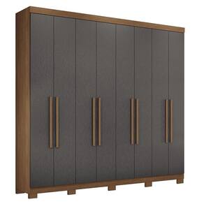 Os 2 cabideiros em alumínio e os 2 calceiros são resistentes, deixam esse guarda-roupa com gavetas mais organizado e facilitam a arrumação das suas roupas, sapatos e objetos pessoais. Além disso esse guarda-roupa moderno possui 6 prateleiras firmes e capazes de sustentar seus utensílios de forma organizada, segura e prática. Esse guarda-roupa 8 portas possui um amplo maleiro capaz de fazer o papel de baú para armazenar jaquetas, roupas de festa, cama e banho ou objetos em geral.