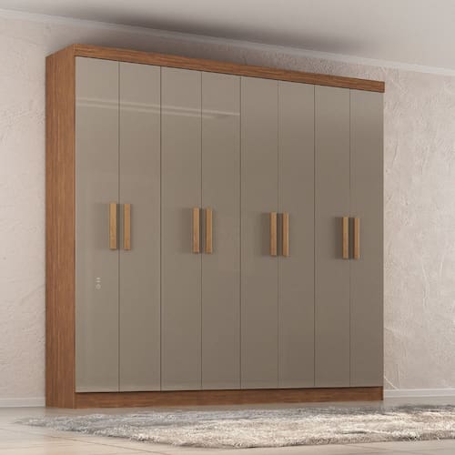 Caracteristicas: 2 Cabideiros 2 Gavetas com corredicas metalicas 8 Portas com dobradicas de metal 4 Prateleiras internas Espaco para calcados e roupas longas Estrutura em MDP/MDF 12mm Puxadores em MDF Maleiro amplo