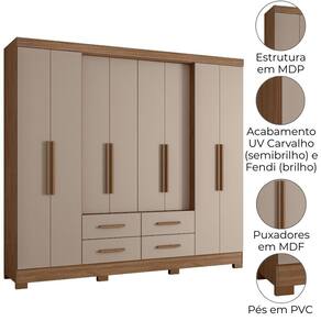 Projetado para atender às necessidades do dia a dia, o Guarda-Roupa Casal San Lorenzo oferece espaço e modernidade. Estrutura em MDP (15/12 mm) e acabamento em pintura UV. Composto por portas com dobradiças metálicas, prateleiras internas, cabideiro interno (alumínio) e gavetas com corrediças telescópicas. Produto com dupla opção de montagem: pés em PVC ou sapatas plásticas (2 mm) conforme a preferência do cliente. Este produto será entregue em 03 volumes.