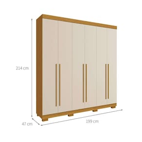 que tal o guarda-roupa Ágata? com o guarda-roupa Ágata você leva o aliado perfeito para seu dormitório completo e organizado. além de ter 6 portas e 3 gavetas para te ajudar na organização de itens do dia a dia, o móvel traz um visual sóbrio e atemporal, destacando a coloração elegante e os puxadores alongados em mdf. ah, notou que o espaço interno é na cor linho? um grande diferencial para dar aquele toque extra de charme ao seu quarto dos sonhos ;) Marca: Modern