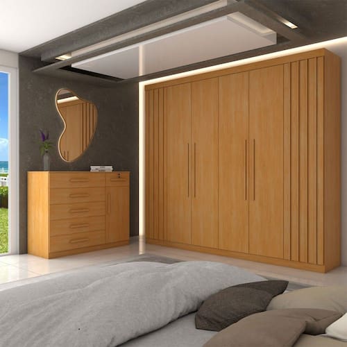 - Acompanha: 1 Guarda-Roupa, 1 Cômoda, Kit Ferragens e Manual de Montagem