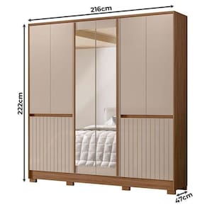 Guarda Roupa Casal Ambiente Alasca 10 Portas Carvalho Fendi com Espelho - Moval