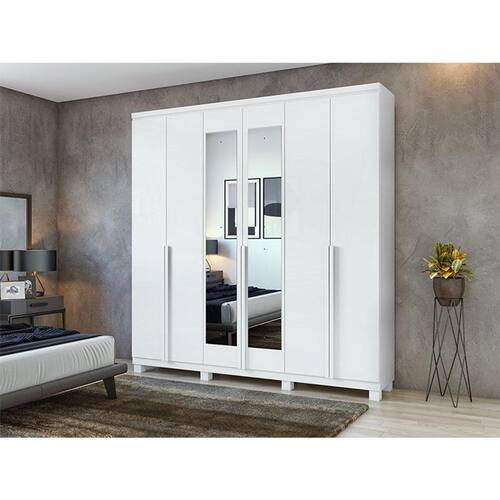 Guarda Roupa Casal Ambiente Alonzo 6 Portas Branco Brilho com Espelho e Pés - Lopas