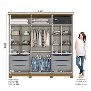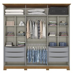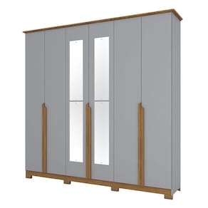 Guarda Roupa Casal Ambiente Andréas 6 Portas Cinza Nature com Espelho - Henn