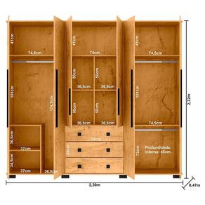 O Guarda Roupa B23063 foi desenvolvido pela Araplac para oferecer funcionalidade, elegância e durabilidade. Com 6 portas e 3 gavetas proporciona amplo espaço interno para manter as roupas, acessórios e objetos pessoais sempre organizados. Seu design moderno se adapta a todos os espaços, adicionando elegância ao ambiente. Confira as características técnicas e aproveite.