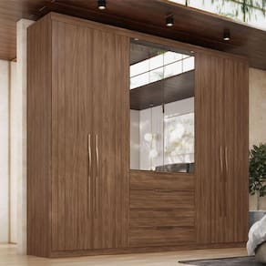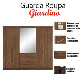 Guarda Roupa Casal Ambiente Giardino 6 Portas Nogueira Touch com Espelho - Demóbile