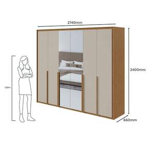 Guarda Roupa Casal Ambiente Imperatore 6 Portas 2 Gavetas Amêndoa Clean Off White com Espelho ? Lopas