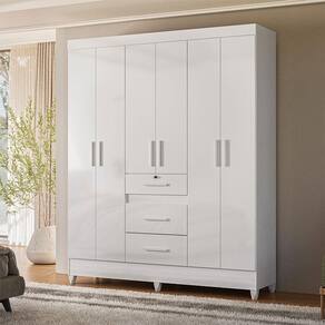 Começou a montar seu quarto? Então apresentamos para você este belo guarda roupad a linha Itatiba. Com design moderno e elegante, conta com seis portas e três gavetas, sendo a primeira gaveta equipada com chave, garantindo mais segurança. As gavetas possuem corrediças metálicas, proporcionando uma abertura suave. Os puxadores em MDF dão um toque de sofisticação, enquanto os pés em PVC garantem mais estabilidade e facilidade na limpeza. Fabricado pela Moval, é desenvolvido em 100% MDP. Sendo ideal para quem precisa de espaço unindo qualidade, design e praticidade, tornando o quarto do casal mais aconchegante e organizado, aproveite!