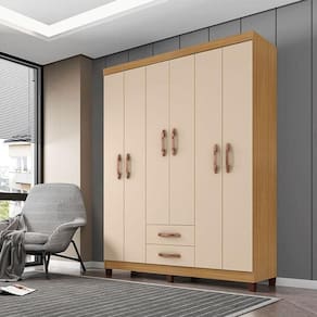 Guarda Roupa Casal Ambiente Mogi 6 Portas Carvalho Americano Off White - Incorplac