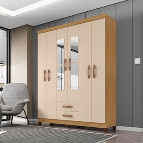 Guarda Roupa Casal Ambiente Mogi com Espelho 6 Portas Carvalho Americano Off White - Incorplac